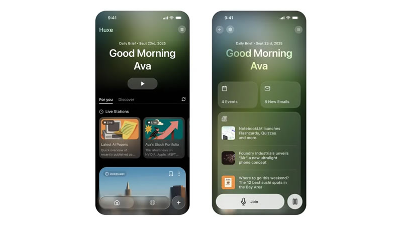 What differs here is that Huxe enables users to build a live station on any topic, like tech news, sports, or even celebrity gossip. After you listen to a station, the app will give you updates by pulling from various sources, which is helpful for following evolving news. There is also a personalized interest feed that automatically produces audio material that could interest you. Martin said that during the early NotebookLM days, a group of power users drove the product feedback, and Huxe is experiencing similar patterns.